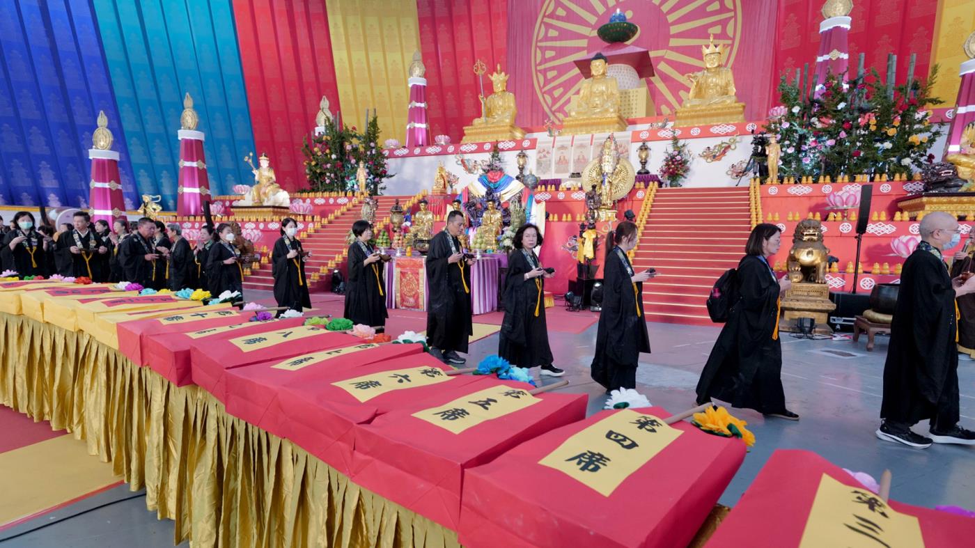 今年水陸法會吸引來自全台的信眾與各界賢達共同參與,包括:桃園府會、警察局、新北市府團隊和民間團體齊聚壇場同聲祝禱。自1994年啟建以來,始終秉持如法如儀精神,已超度無數群靈,在佛菩薩的慈悲加持下離苦得樂,也幫助生者在佛法熏習中培養慈悲心量,增長面對生死無常的智慧。